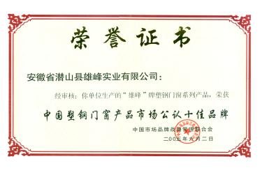 中國塑鋼門窗產(chǎn)品市場公認十佳品牌